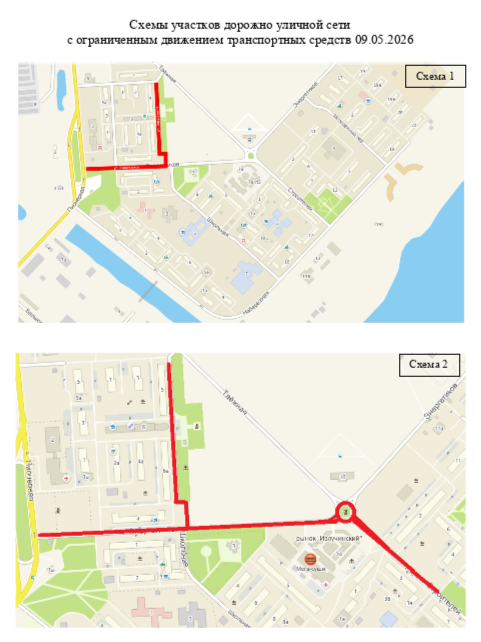 Информируем о введении 09.05.2026 ограничения движения транспортных средств в границах пгт. Излучинск, в период проведения мероприятий, посвященных Дню Победы в Великой Отечественной войне: